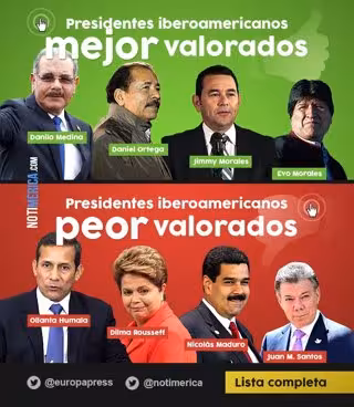 En este sentido, no es de extrañar que muchos líderes iberoamericanos se queden lejos del aprobado. Según un informe elaborado por la firma CID Gallup, seis presidentes de la región encabezan la lista de peor valorados, con porcentajes que oscilan entre el 17 y el 29 por ciento.