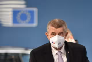 HANDOUT - 21 October 2021, Belgium, Brussels: Czech Republic's Prime Minister Andrej Babis arrives for the first day of a European Union summit at The European Council. Photo: Gaetan Claessens/European Council/dpa - ATTENTION: editorial use only and onl - Gaetan Claessens/European Counci / DPA