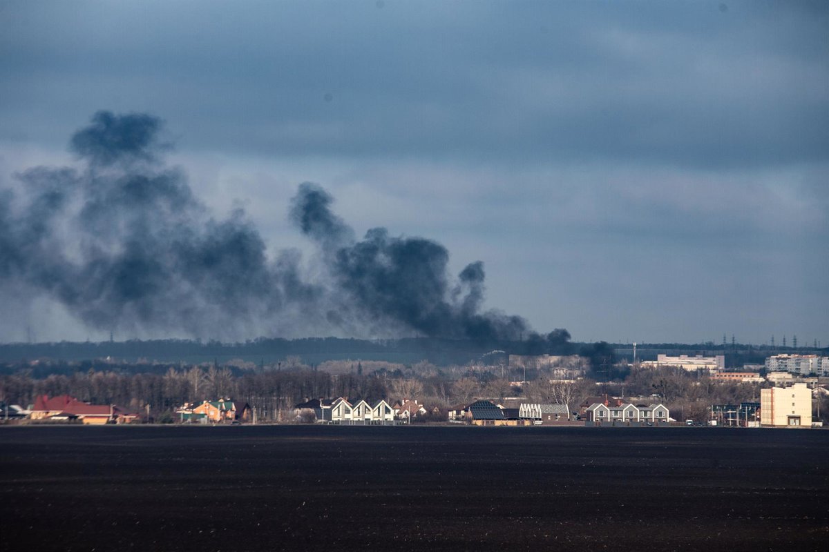 November 30, 2025, Sumy, Ukraine: Column of smoke rises at an electrical substation following a Russian drone attack in Sumy. The Russian army attacked Sumy several times with drones. Part of the city was left without electricity or water due to the attac - Europa Press/Contacto/Francisco Richart