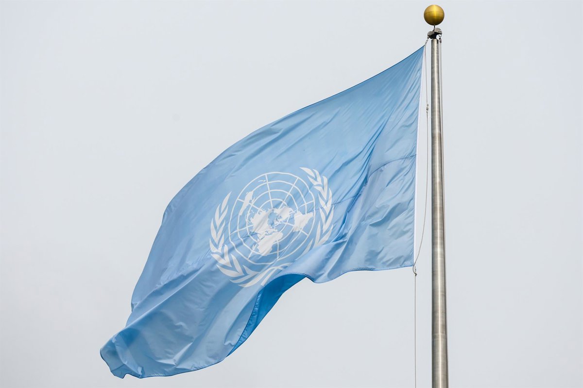 USA, NEW YORK New York City - SEPTEMBER 24, 2025: The United Nations flag flies during the 80th session of the UN General Assembly - Europa Press/Contacto/Valery Sharifulin
