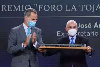 Felipe VI ha tenido también palabras de reconocimiento para Angel Gurría, ex secretario general de la OCDE y que ha recibido de sus manos el primer premio Foro La Toja, agradeciendo su "compromiso personal en favor del mejor funcionamiento de una comunidad internacional que todos queremos más justa y equitativa".