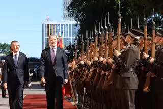 El Rey Felipe VI ha sido recibido con honores militares en el Castillo de Riga por el presidente de Letonia, Edgar Rinkevics, en el arranque de su visita a Letonia, última etapa de su gira por los países bálticos.
