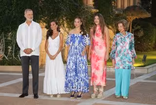 Los Reyes Don Felipe y Doña Letizia, la Princesa Leonor, la Infanta Sofía y la Reina Doña Sofía durante la recepción a la sociedad balear en el Palacio de Marivent, a 4 de agosto de 2025, en Palma de Mallorca (Islas Baleares, España) - Raúl Terrel - Europa Press
