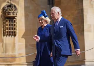 09 April 2023, United Kingdom, Windsor: King Charles III and Camilla, Queen Consort attend the Easter Service at St George's Chapel in Windsor Castle. Photo: Yui Mok/PA Wire/dpa - Yui Mok/Pa Wire/Dpa