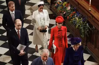 Archivo - 11 March 2019, England, London: Charles, Prince of Wales, Camilla Duchess of Cornwall, Prince William Duke of Cambridge, Kate Duchess of Cambridge, Prince Harry Duke of Sussex, and Meghan Duchess of Sussex, leave after attending the Commonweal - Kirsty Wigglesworth/PA Wire/dpa - Archivo