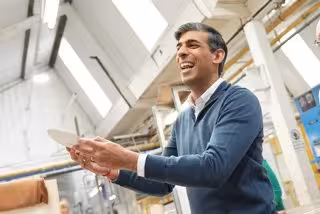 28 May 2024, United Kingdom, Stoke-on-Trent: UK Prime Minister Rishi Sunak visits a pottery factory in Stoke On Trent, Staffordshire, while on the General Election campaign trail. Photo: Aaron Chown/PA Wire/dpa - Aaron Chown/PA Wire/dpa