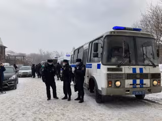 Archivo - 13 March 2021, Russia, Moscow: Russian police officers stand guard outside a building after breaking up an opposition gathering and arrested several people of the Russian opposition movement so-called 'United Democrats'. Photo: Hannah Wagner/d