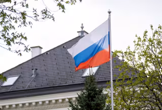 Archivo - Una bandera rusa en la Embajada de Rusia en la capital de Austria, Viena - Georg Hochmuth/APA/dpa - Archivo