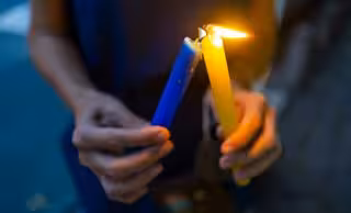Dos velas en una manifestación en Brasil a favor de Ucrania