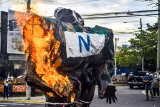 Un grupo de manifestantes se ha congregado este domingo frente al Monumento a la Constitución de San Salvador para protestar ante la resolución del Tribunal Supremo que permite la reelección presidencial inmediata y abre la puerta a la reelección del actual mandatario, Nayib Bukele.