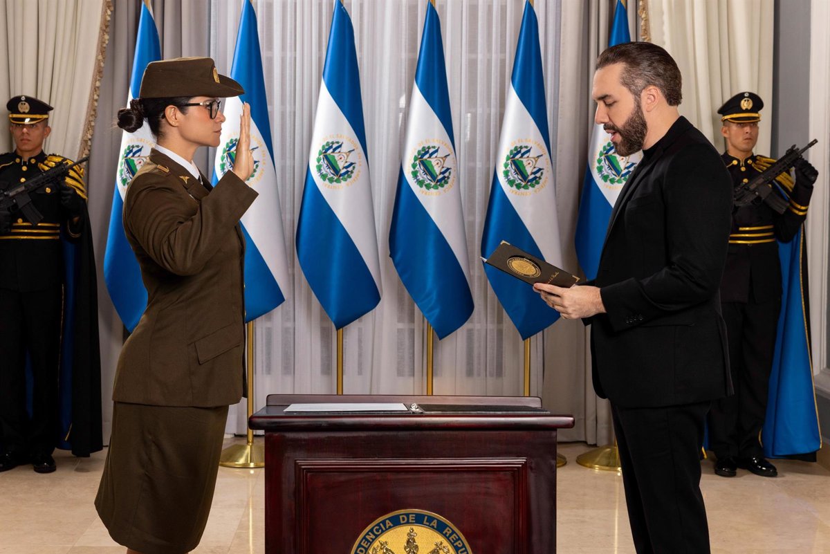 Archivo - La  nueva ministra de Educación de El Salvador,, Karla Trigueros, toma posesión ante el presidente de El Salvador, Nayib Bukele