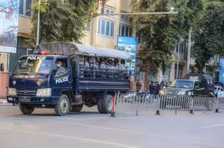 Archivo - Un camión policial con soldados durante el golpe de Estado en Birmania
