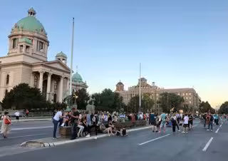 Serbia.- Cientos de personas se manifiestan una noche más frente al Parlamento d