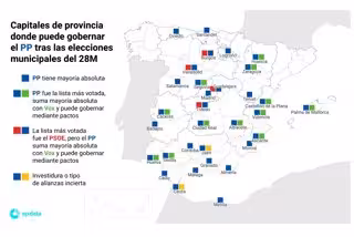 Capitales de provincia donde puede goebrnar el PP tras las elecciones municipales del 28M. - EPDATA