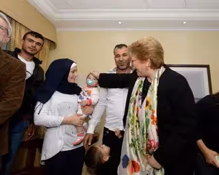 La presidenta chilena, Michelle Bachelet, recibe a refugiados sirios