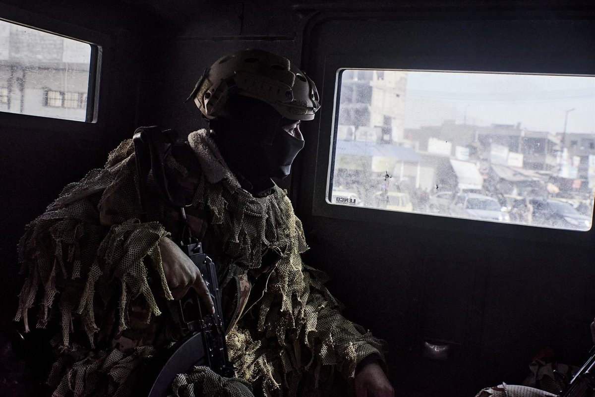 Archivo - February 9, 2025, Raqqa, Syria: Raqqa, February 9, 2025 - A member of the Hezen Komandos, the elite unit of the Syrian Democratic Forces, in an armoured vehicle during a patrol in the streets of Raqqa. The soldiers are mainly maintaining a prese - Europa Press/Contacto/Antonin Burat - Archivo