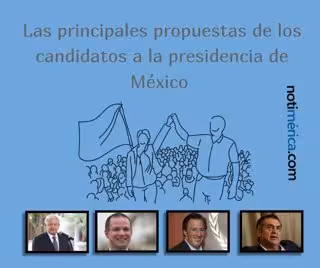 Notimérica presenta las principales propuestas de cada candidato, lo cuales son: Andrés Manuel López Obrador, con la coalición 'Juntos Haremos Historia'; Ricardo Anaya, por 'Por México Al Frente'; José Antonio Meade con la agrupación 'Todos por México' y, por útlimo, el independiente Jaime Rodríguez 'El Bronco'.