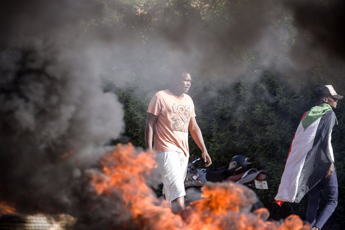 Archivo - June 3, 2020, Khartoum, Khartoum, Sudan: Sudanese protesters some clad in masks as a precaution due to the COVID-19 coronavirus pandemic, wave national flags and burn tyres as they take part in a demonstration in the capital Khartoum, on May 23, - Europa Press/Contacto/Faiz Abu Bakr - Archivo
