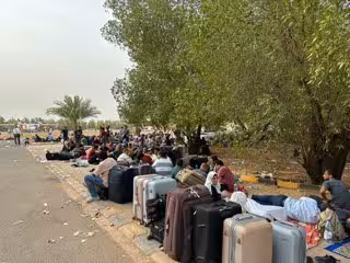 OMDURMAN, April 26, 2023 -- People wait to be evacuated near an airport in Omdurman, Sudan, April 26, 2023. As conflict continues in Sudan, many people have fled to neighboring countries. - Europa Press/Contacto/Sui Xiankai