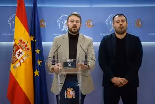 El diputado de Sumar Alberto Ibáñez (i) y el diputado de IU Nahuel González (d) durante una rueda de prensa, en el Congreso de los Diputados, a 4 de noviembre de 2025, en Madrid (España). - Alejandro Martínez Vélez - Europa Press