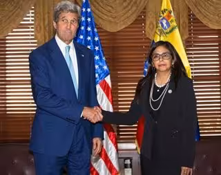 Este martes se pudo presenciar una escena poco habitual: el secretario de Estado estadounidense, John Kerry, estrechando la mano a la canciller venezolana, Delcy Rodríguez.