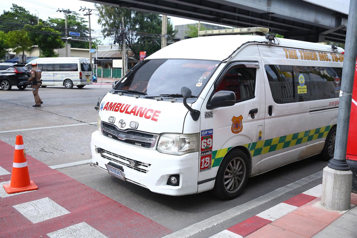 Archivo - BANGKOK, July 28, 2025  -- An ambulance is parked near the site of a shooting incident in Bangkok, Thailand, July 28, 2025.   At least six people were killed in a shooting incident in Thailand's capital Bangkok on Monday, local media Thairath re