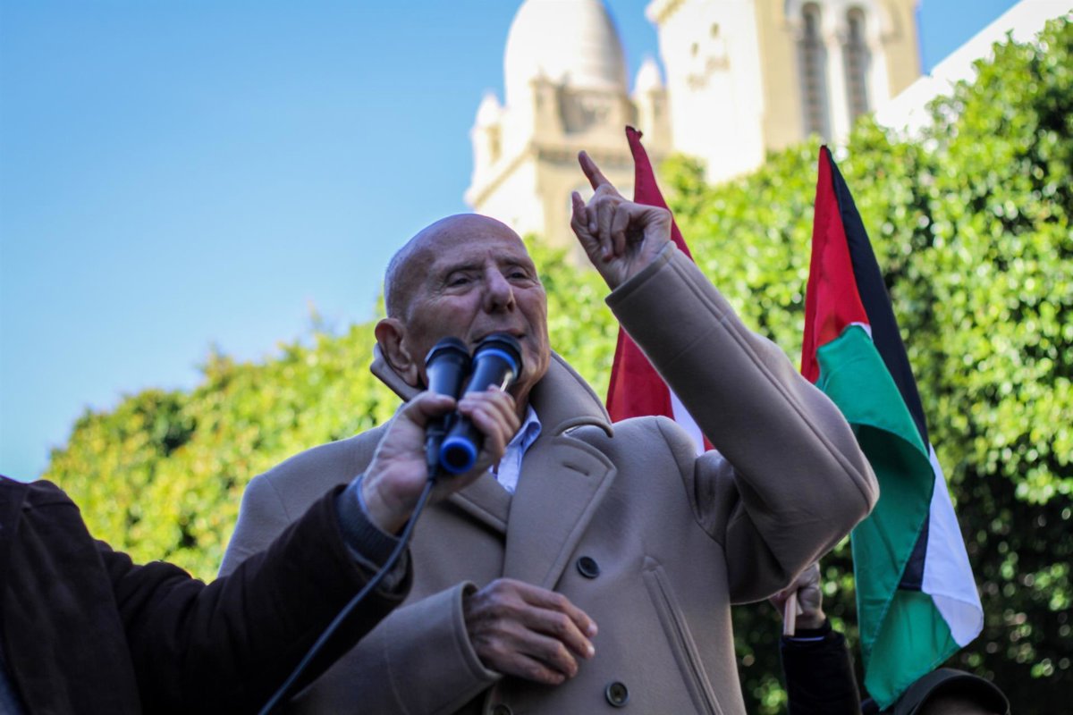 Archivo - January 14, 2024: Tunis, Tunisia, 14 January 2024. Tunisian opposition leader Ahmed Nejib Chebbi join a protest of opposition political parties on Revolution Day along the Habib Bourguiba Street in Tunis. Participants waved the Tunisian and the