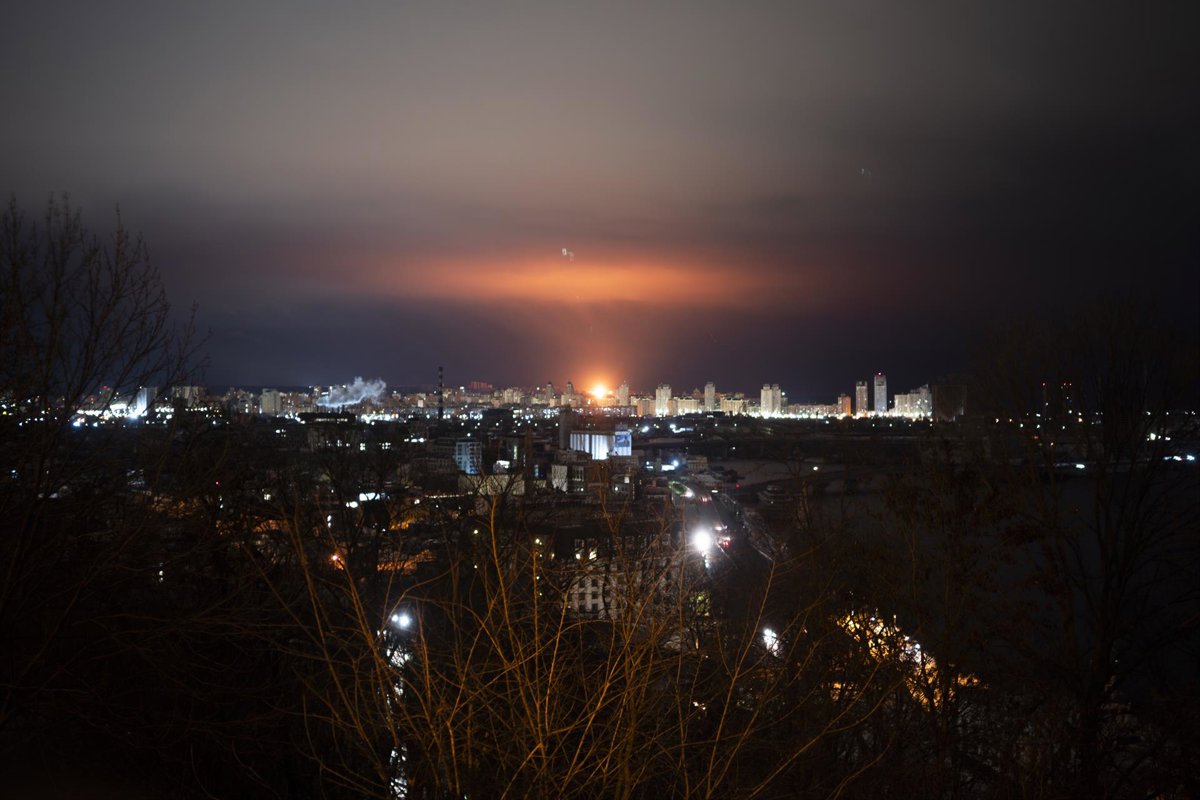 December 27, 2025, Kyiv, England, Ukraine: The sky over Kyiv, Ukraine is illuminated as a Russian drone detonates upon impact during large-scale attack on December 27, 2025. Russian Forces have been targeting critical infrastructure across Ukraine, with e - Europa Press/Contacto/Cedar Barnes