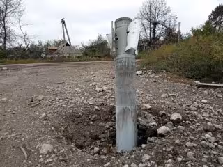 Archivo - September 29, 2022, Kharkiv Region, Ukraine: A russian army projectile stuck in the asphalt in the village of Peremoha, Kharkiv Region, north-eastern Ukraine.