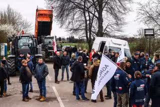 April 16, 2023, Hrubieszow, Poland: Farmers of Agrounia and other union organizations protest near the rail line on the border with Ukraine in Hrubieszow, Poland on April 16, 2023. Polish farmers protest against Ukrainian agricultural products imports, - Europa Press/Contacto/Beata Zawrzel
