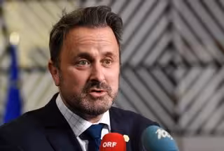 HANDOUT - 24 February 2022, Belgium, Brussels: Xavier Bettel, Prime Minister of Luxembourg, speaks to media upon her arrival to attend the Special meeting of the European Council on the situation in Ukraine. Photo: -/EU Council/dpa - ATTENTION: editoria - -/EU Council/dpa