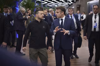 November 7, 2024, Budapest, Hungary: Ukrainian President Volodymyr Zelenskyy, left, walks with French President Emmanuel Macron, right, before a bilateral meeting on the sidelines of the 5th European Political Community Summit, November 7, 2024 in Budap - Europa Press/Contacto/Ukraine Presidency/Ukrainian