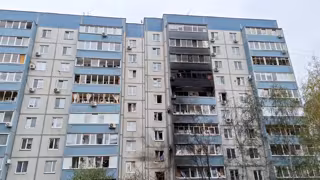 RUSSIA, SAMARA REGION - APRIL 22, 2026: A view of a partially collapsed apartment building in Syzran after a drone strike. Video grab. Best quality available