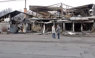 March 12, 2025, Kyiv Region, Ukraine: People stand outside the building of a furniture factory damaged by the fall of the downed Russian drone, Boiarka, Kyiv region, Ukraine, on March 12, 2025 - Europa Press/Contacto/Volodymyr Tarasov