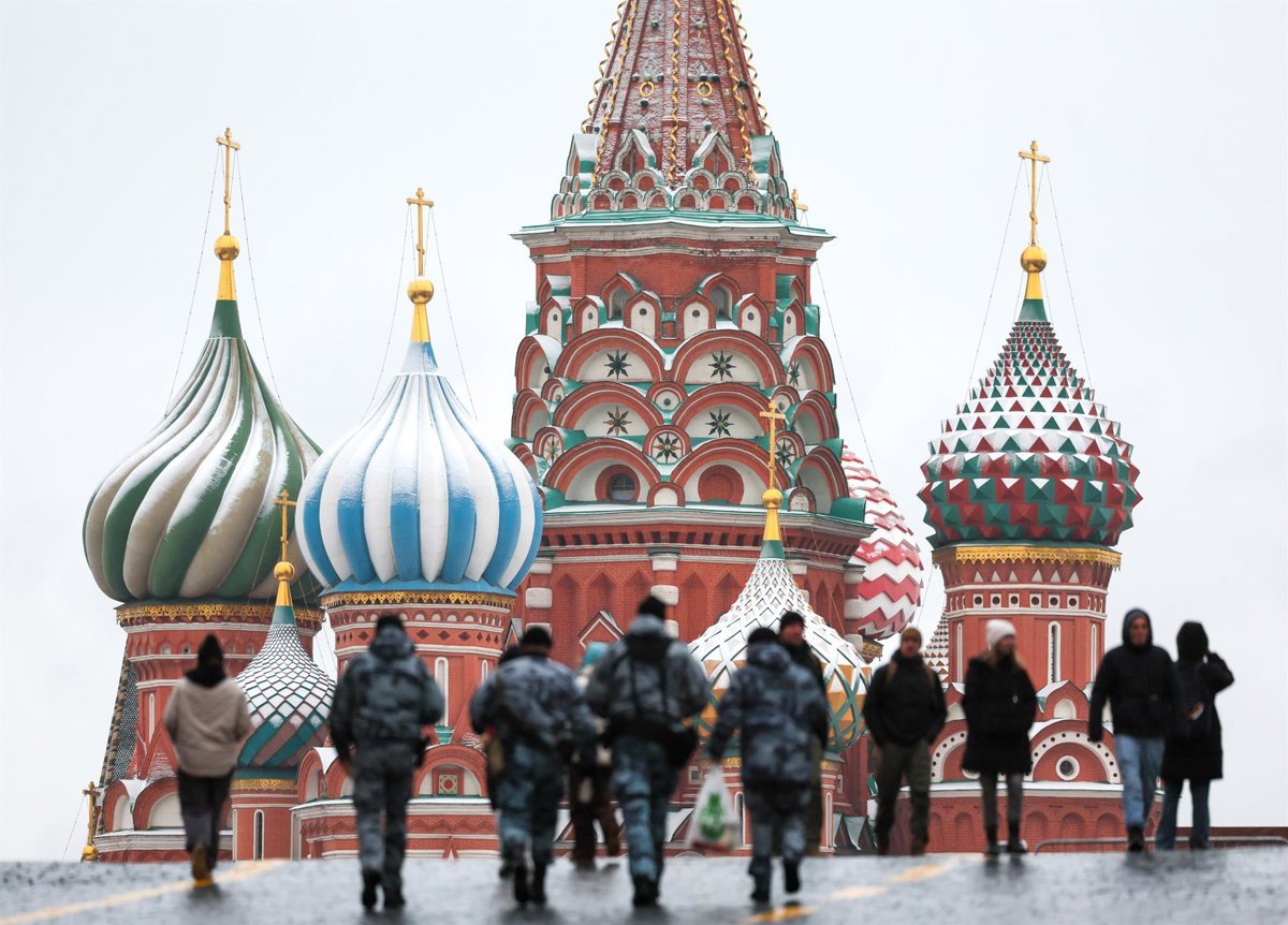 RUSSIA, MOSCOW - DECEMBER 10, 2025: People are seen in front of St Basil's Cathedral in Red Square - Europa Press/Contacto/Alexei Konovalov