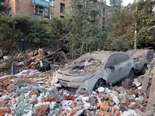 Archivo - 31 May 2024, Ukraine, Kharkiv: Cars crushed by the rubble are pictured outside a block of flats damaged by the overnight Russian missile attack in the Novobavarskyi district of Kharkiv, northeastern Ukraine. Five people have been killed and 25 i