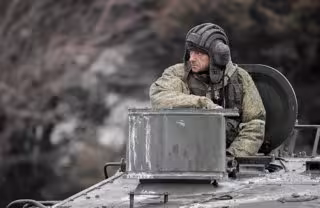 Archivo - Un militar ruso monta un vehículo blindado de transporte de personal en Armyansk, en el norte de Crimea, Rusia. El 24 de febrero, el presidente ruso Vladimir Putin anunció una operación militar en Ucrania tras el reconocimiento de la independe