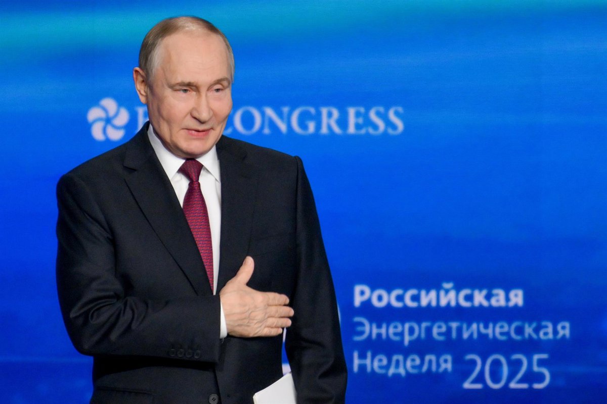16 October 2025, Russia, Moscow: Russia's President Vladimir Putin speaks during the 2025 Russian Energy Week Forum at the Manege Central Exhibition Hall in Moscow. Photo: Grigory Sysoyev/TASS via ZUMA Press/dpa - Grigory Sysoyev/TASS via ZUMA Pr / DPA