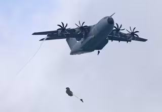 Archivo - 23 July 2024, Bavaria, Kochel Am See: German Armed Forces (Bundeswehr) parachutists from the Altenstadt Airborne/Air Transport School land jump from an Airbus A400M of the 62nd Air Transport Wing from Wunstorf into Lake Kochel from a height of a - Uwe Lein/dpa - Archivo