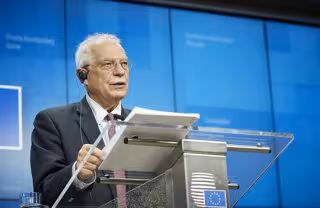 HANDOUT - 19 November 2020, Belgium, Brussels: EU High Representative of the European Union for Foreign Affairs and Security Policy Josep Borrell attends a press conference after the EU Foreign Ministers' video conference meeting. Photo: Mario Salerno/E
