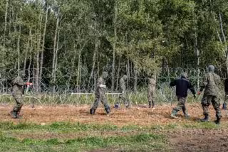 Archivo - 01 September 2021, Poland, Wojnowce: Polish soldiers build a razor-wire fence along the border with Belarus close to the village of Minkowce. The Polish government is introducing a State of Emergency on the border with Belarus in two voivodesh - Attila Husejnow/SOPA Images via / DPA - Archivo
