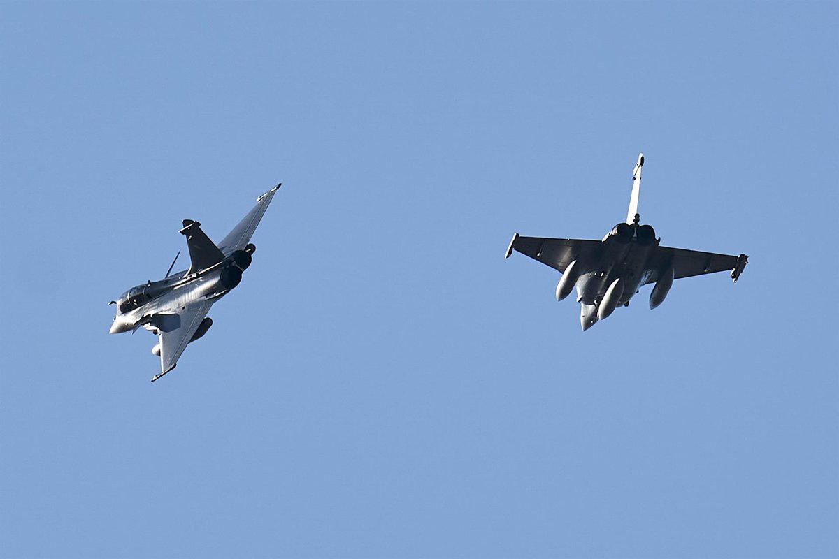 Archivo - Dos aviones Dassault Rafale Armee de L’air de Francia realizan prácticas de maniobras aéreas de combate, en las inmediaciones de la base aérea de Los Llanos, a 22 de febrero de 2022, en Albacete, Castilla-La Mancha (España). Las maniobras se rea - A. Pérez Meca - Europa Press - Archivo