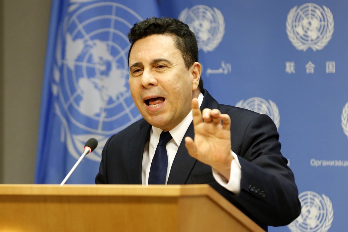 Archivo - UNITED NATIONS, April 10, 2019  Venezuelan Permanent Representative to the United Nations Samuel Moncada speaks to journalists during a press briefing after a Security Council meeting on the situation in his country, at the UN headquarters in Ne