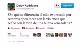 "¿En qué se diferencia el odio expresado por sectores opositores con la violencia que acabó con la vida de una buena venezolana?", escribió la ministra en su cuenta de Twitter, en referencia a la muerte de la ex miss venezolana.