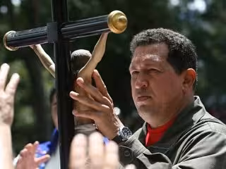 Chávez ante un crucifijo