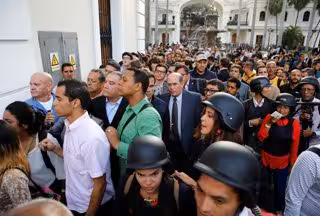 Gente esperando para abandonar el Parlamento, en Caracas
