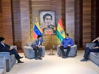 El presidente de Bolivia, Evo Morales, ha expresado su apoyo a su homólogo venezolano, Nicolás Maduro, ante el "golpismo intervencionista" de Estados Unidos sobre Venezuela durante una reunión entre ambos mandatarios en el aeropuerto internacional Simón Bolívar de Caracas.