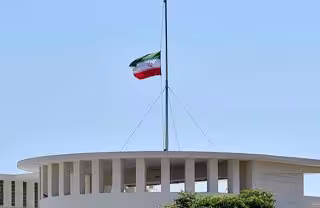 May 20, 2024, Pakistan: KARACHI, PAKISTAN, MAY 20: National flag of Iran flying half-mast on Iran Consulate .Building, a day of mourning is being observed across Pakistan over the death of Iranian .President Ebrahim Raisi and his companions in helicopte