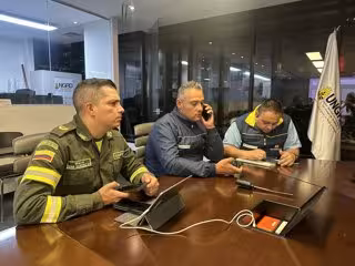 Miembros de la Unidad Nacional para la Gestión del Riesgo de Desastres trabajando en la emergencia por el derrumbamiento en Colombia - UNGRD