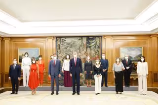 Para finalizar el acto celebrado en Zarzuela, los doce ministros y vicepresidentas han posado para una fotografía de grupo junto al jefe del Estado y a Sánchez. En primera fila estaban el presidente, Felipe VI, las tres vicepresidentas, Pilar Llop y Félix Bolaños, y los demás miembros del Gobierno se alineaban en una segunda fila.